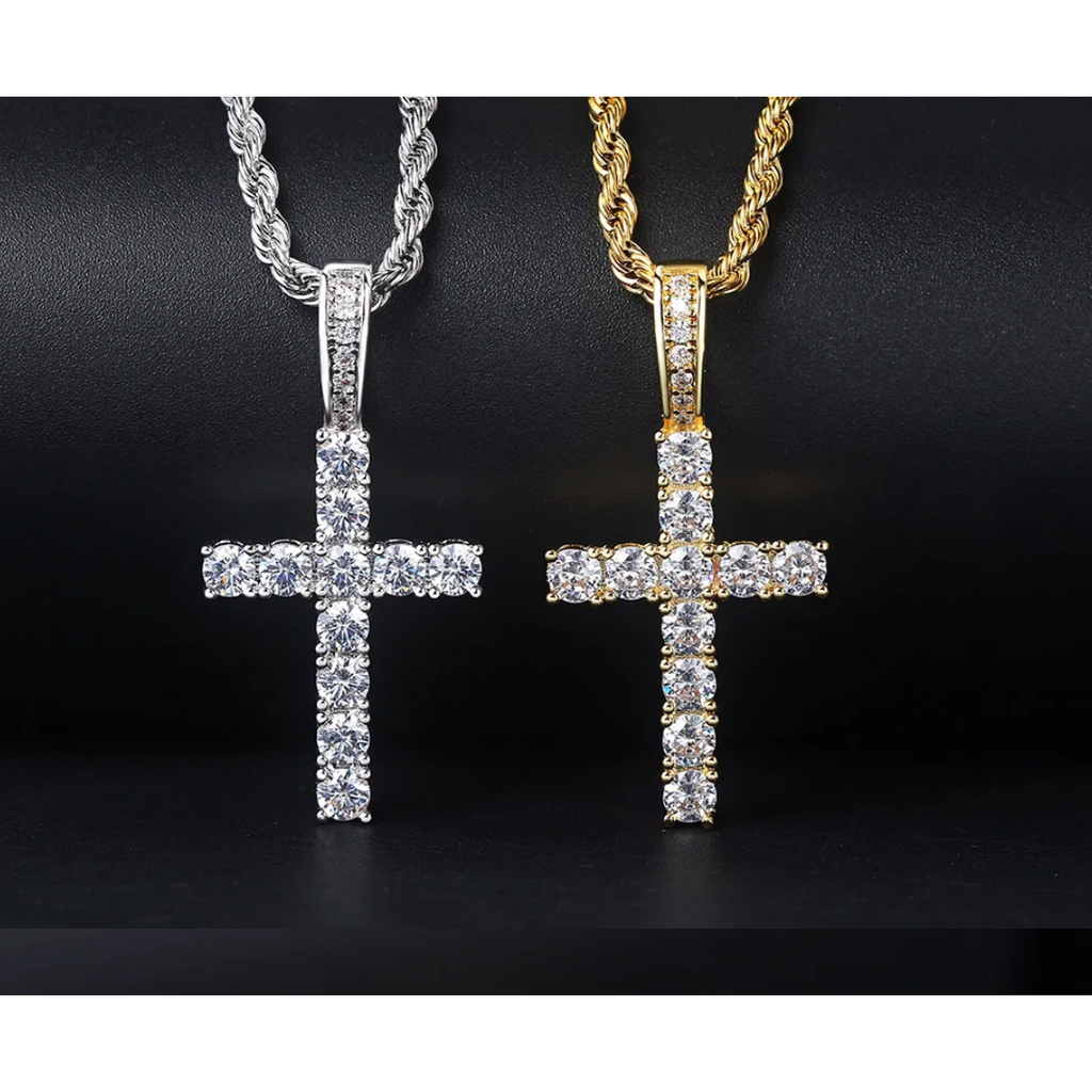 Featuring a sleek twisted rope chain and bold cross pendant with diamonds it’s made to shine at beach parties, nights out, or just flexing on the daily.
