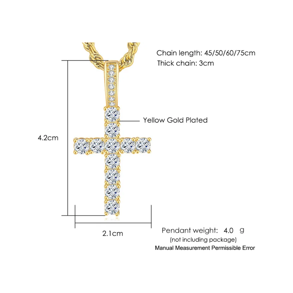 Level up your drip with this Triple Gold Plated 18K Stainless Steel Cross Necklace With Diamonds – the ultimate bling ting for anyone who moves with style and purpose.