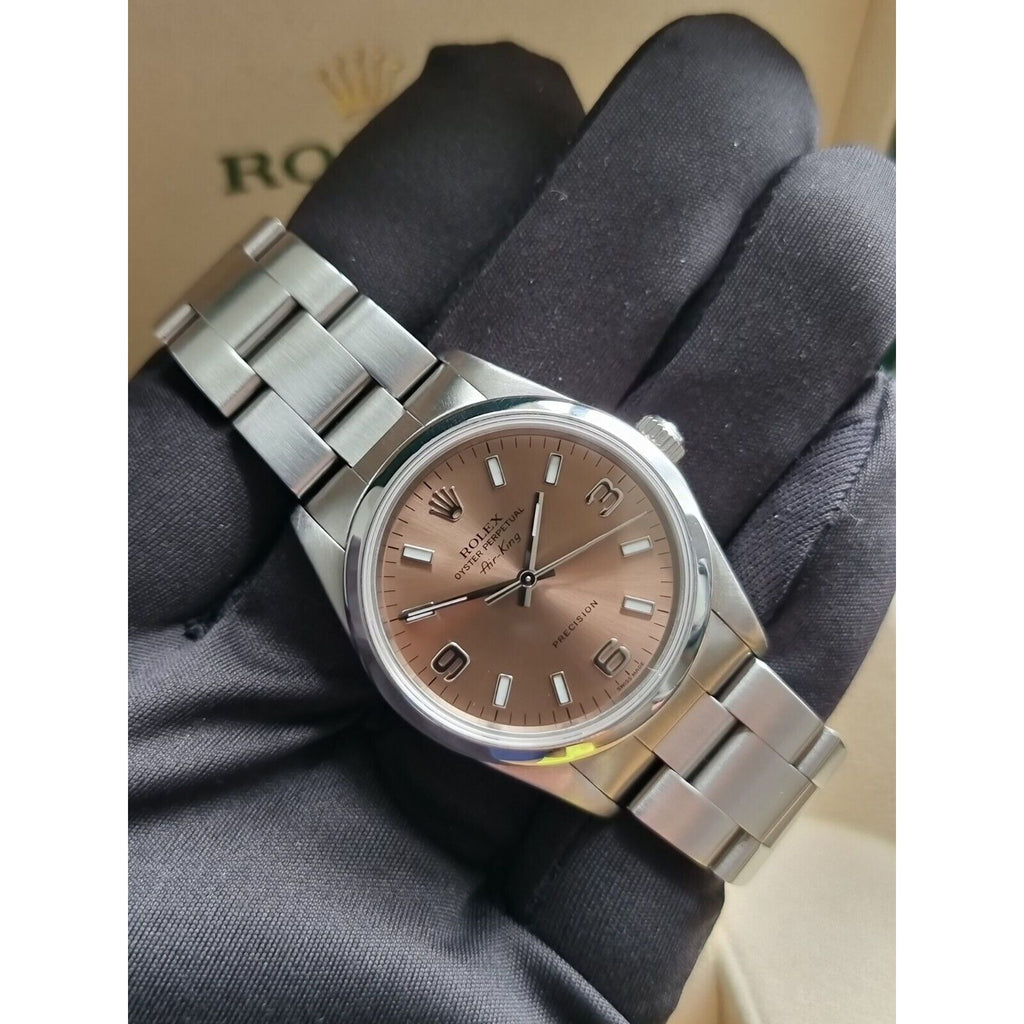 As you can see presented in exceptional condition is this Salmon dial Air-King 34mm on a Oyster bracelet with Explorer style Arabic 3,6,9 numerals and batton markers. This modern classic Rolex is in beautiful original condition and with a desirable Salmon dial is keeping excellent time.