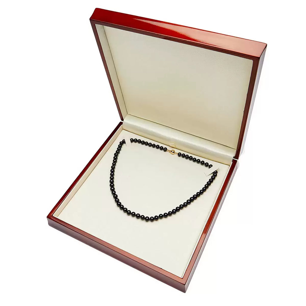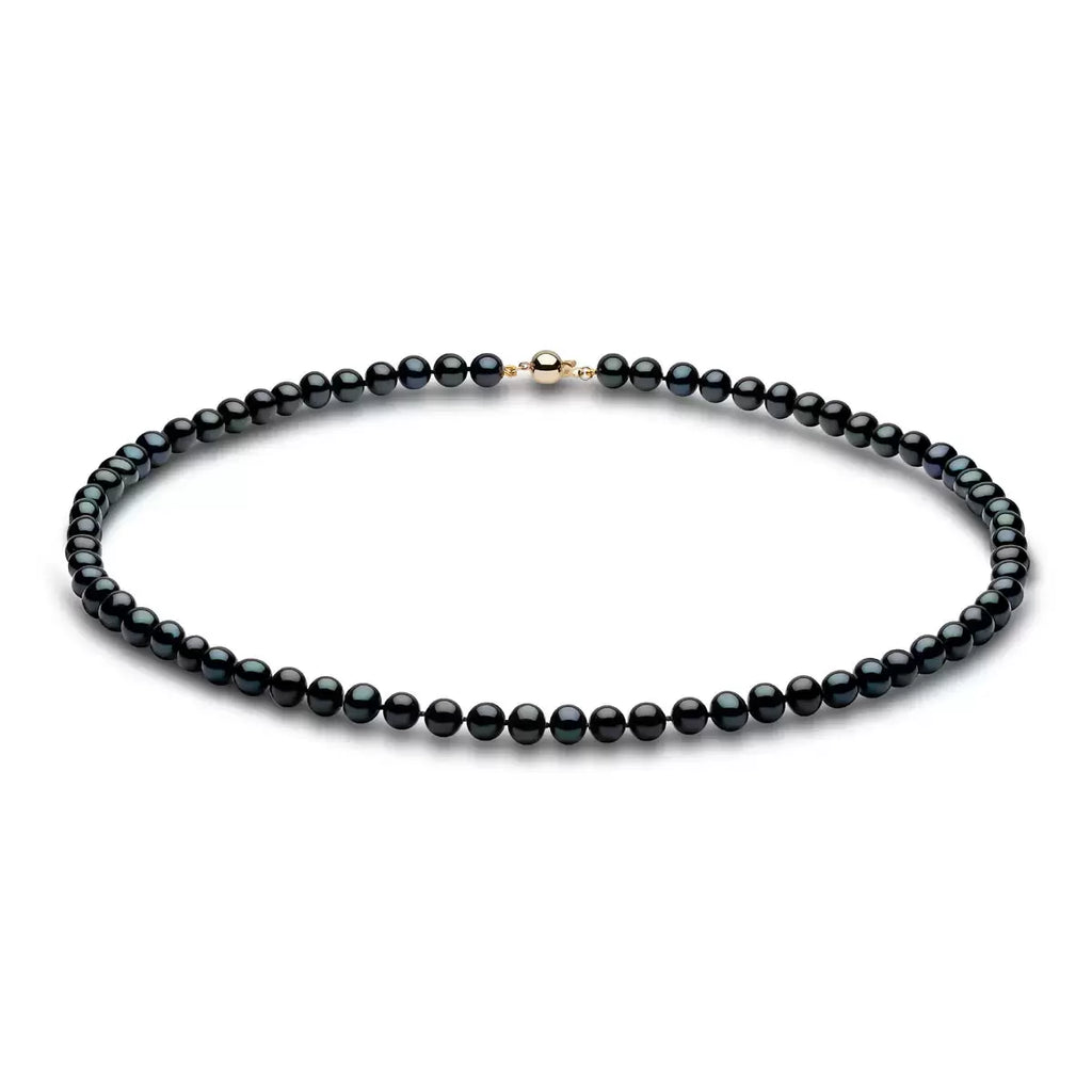6-6.5mm Cultured Freshwater Black Pearl Necklace, 18ct Yellow Gold