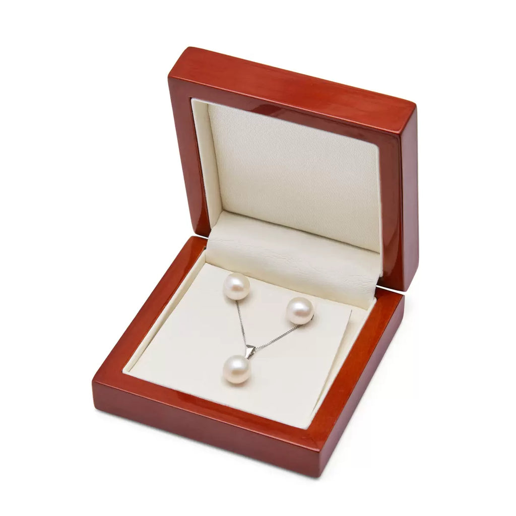 Cultured Freshwater 8.5-9mm White Pearl Pendant and Stud Earring Set, 18ct White Gold
