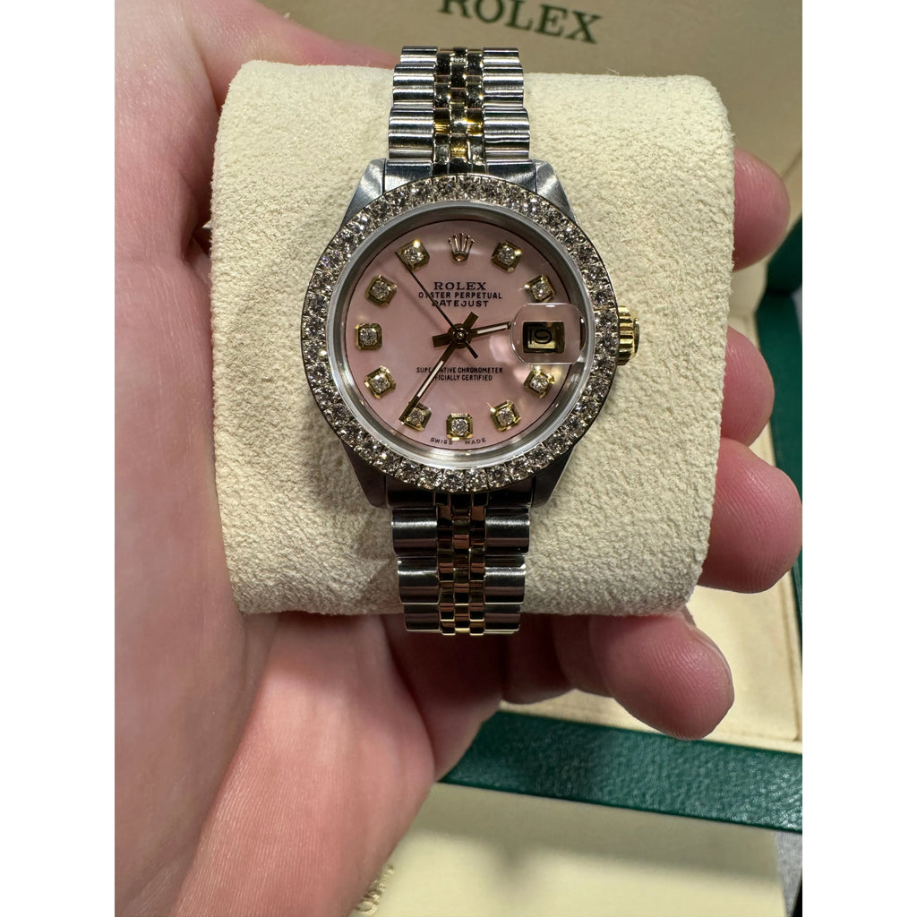 Rolex Datejust 26mm 6917 Deep Pink MOP Diamond Face & Diamond Bezel Bi Metal