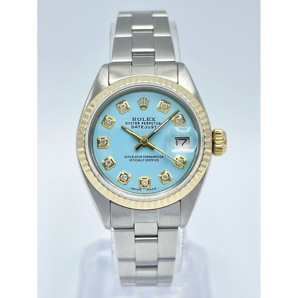 Rolex Datejust Ladies 26mm 6917 Tiffany Blue Diamond Dial Yellow Gold Two Tone