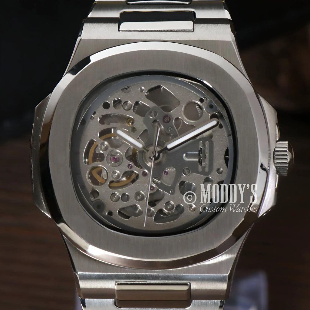 Inspired by the iconic Nautilus design, and featuring the prestigious Seiko NH70 automatic movement, we present the Seiko Mod Nautilus. A 41 mm high-end quality watch combining the perfect alliance between excellence and accessibility.