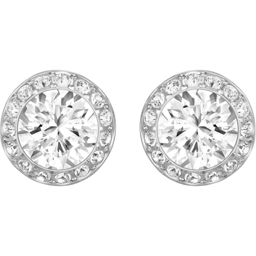 Brilliant and dazzling: Swarovski Angelic Collection, stud earrings combine white crystals with the beauty of rhodium plated metal, creating a stylish pair of earrings to match any outfit